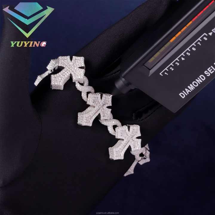 XG Iced Out Cross Moissanite Cuban Bracelets 925 Silver Plated Gold Fine Jewelry Vvs Moissanite Diamond Bracelets for Men/Women