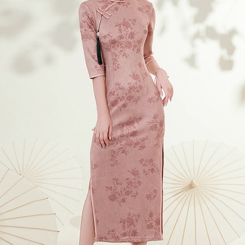 XIUYU Fashion Dress Traditional Chinese Design Mandarin Collar Cheongsam Satin Special Occasion Midi Embroidered Dress