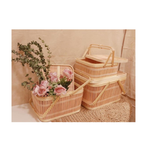 XL Size Natural Bamboo Picnic Basket with Lid for Food and Fruits Storage Outdoor Activities Bamboo Products Basket Curtain Box