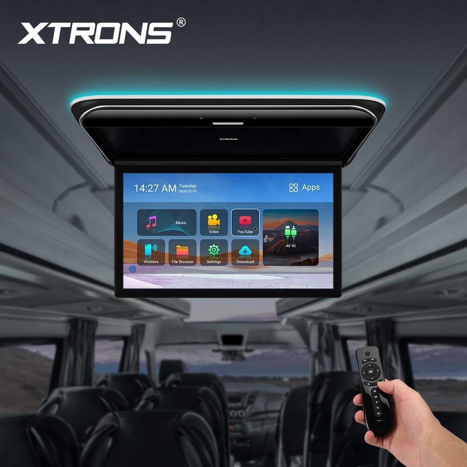 XTRONS 19.5 Inch Android Car Roof Monitor With 1600x900P IPS Screen 2+32GB Built-in Speakers HD/Dual AV Input 4K Video Playback