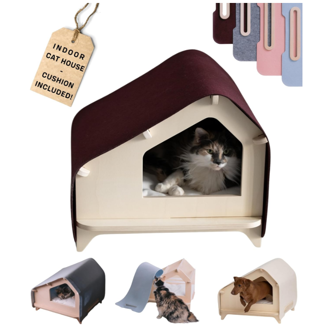 XWOOD Canvas Roof Wooden Cat House Indoor Cozy Shelter For Cats Soft Material And Solid Wood Base