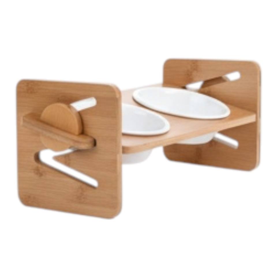 XWOOD FT15 Classic Wooden Cat Feeding Tray Natural Safe Wood Elevated Pet Feeder Raised Bowl Stand Solid Bottle for Indoor Cats