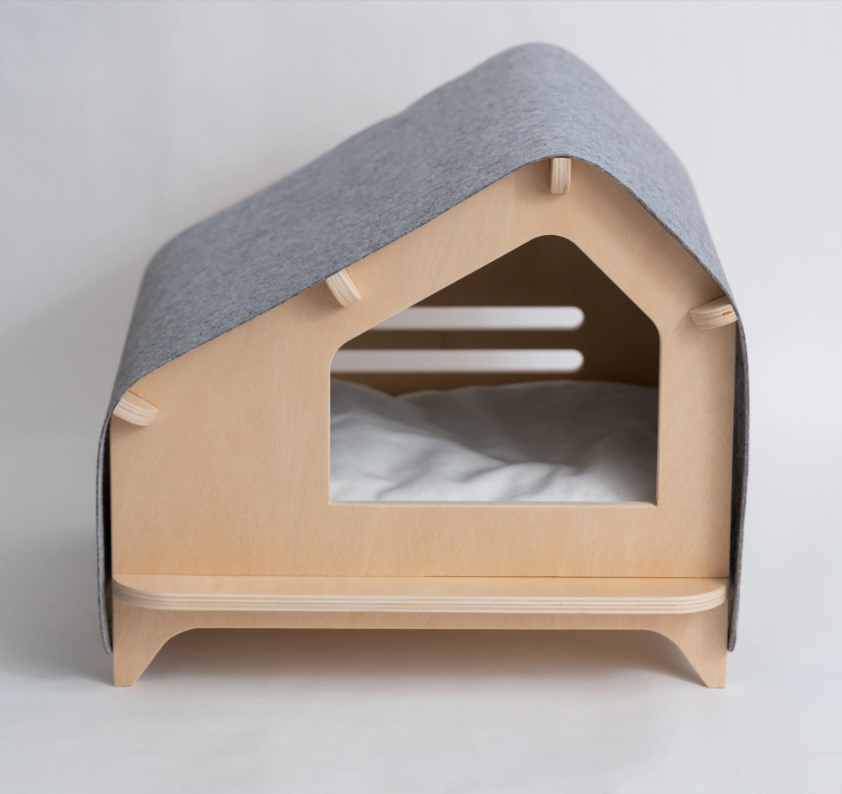XWOOD Modern Wooden Cat House Indoor Cozy Hideout Detachable Panel Design Natural Pine Wood Durable Build AC06