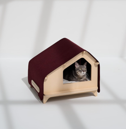 XWOOD Sustainable Wooden Cat House Indoor Natural Material Detachable Easy Setup AC06