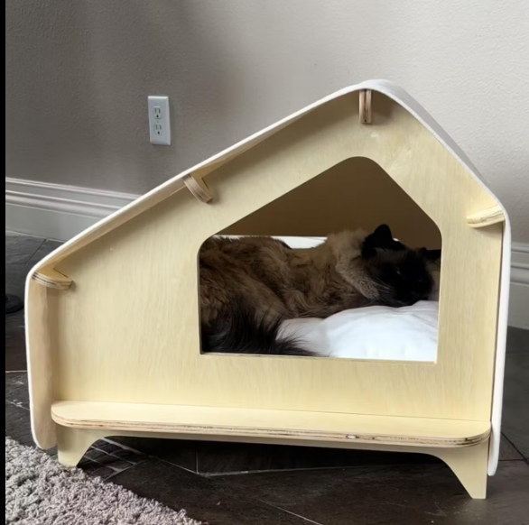 XWOOD Wooden Cat House Indoor Foldable Frame Natural Pine Wood Pet Hideout AC06