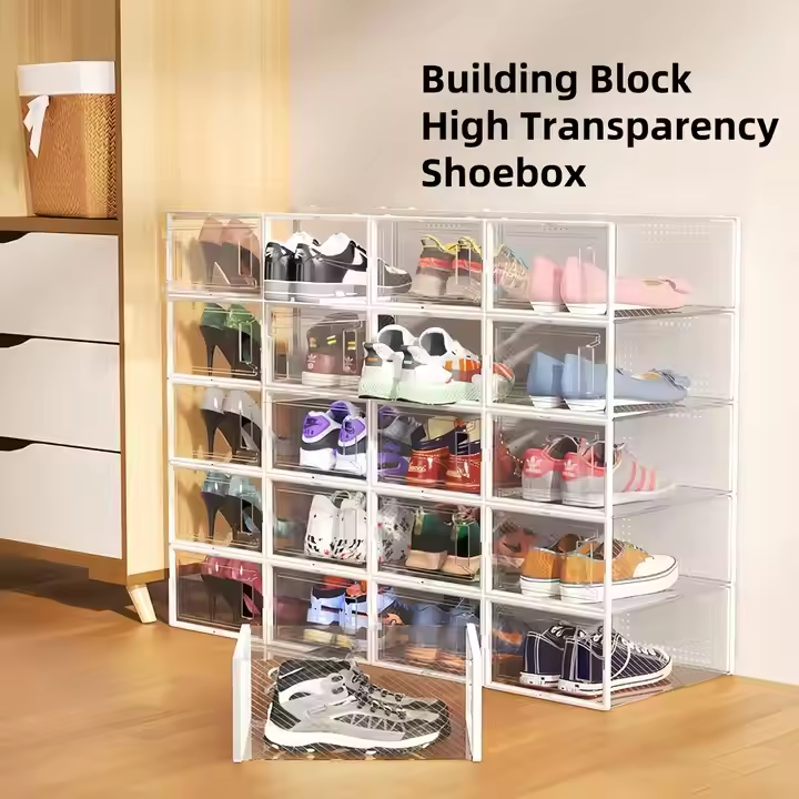 XX-Large 12-Pack Clear Fit Size 13 Sneaker Rack Containers Bathroom Clear Plastic Stackable Shoe Organizer Storage Box
