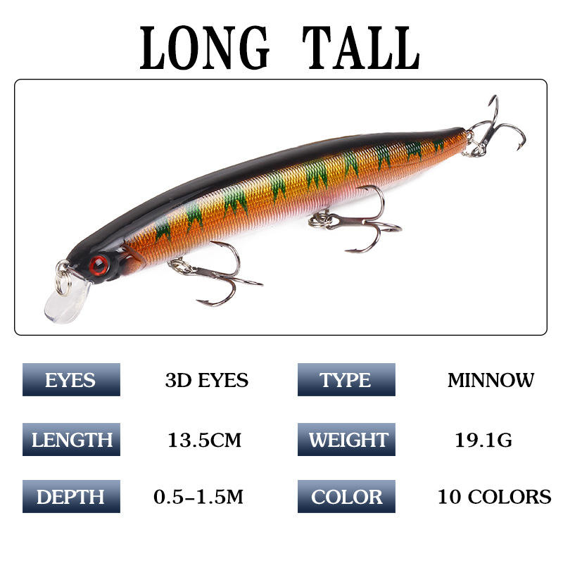 XY-256 Minnow Lure 13.5cm 19.1g Sinking Bottom Bait For Bass Fishing Tackle Set