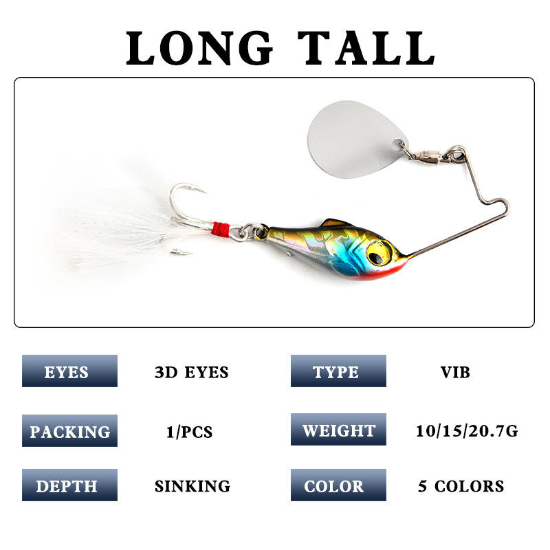 XY-339 Spinner Lure Midwater Bass Fishing Tackle 3D Fish Shape Feather Hook Artificial Lure Long Casting Noise Composite