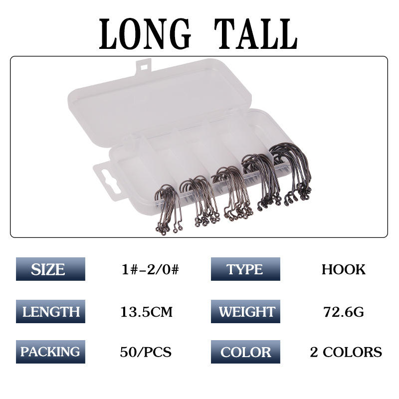 XY-60 Crank Hooks 51-Piece Box Freshwater Fishing Lure Hooks Soft Bait Hooks Tackle Accessories