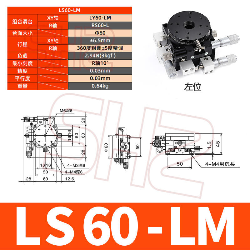 XYR Axis LS60/40/90/100/125 Precision Rotary Optical Sliding Stage Three-Axis Fine-Tuning for Total Station