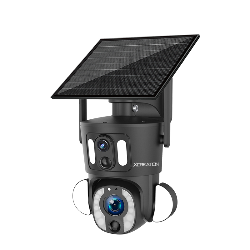 Xcreation 4G Solar Battery Powered 6MP Dual Lens Security Camera PIR Humanoid Detection Ubox IR CMOS Auto Tracking SD Card Made