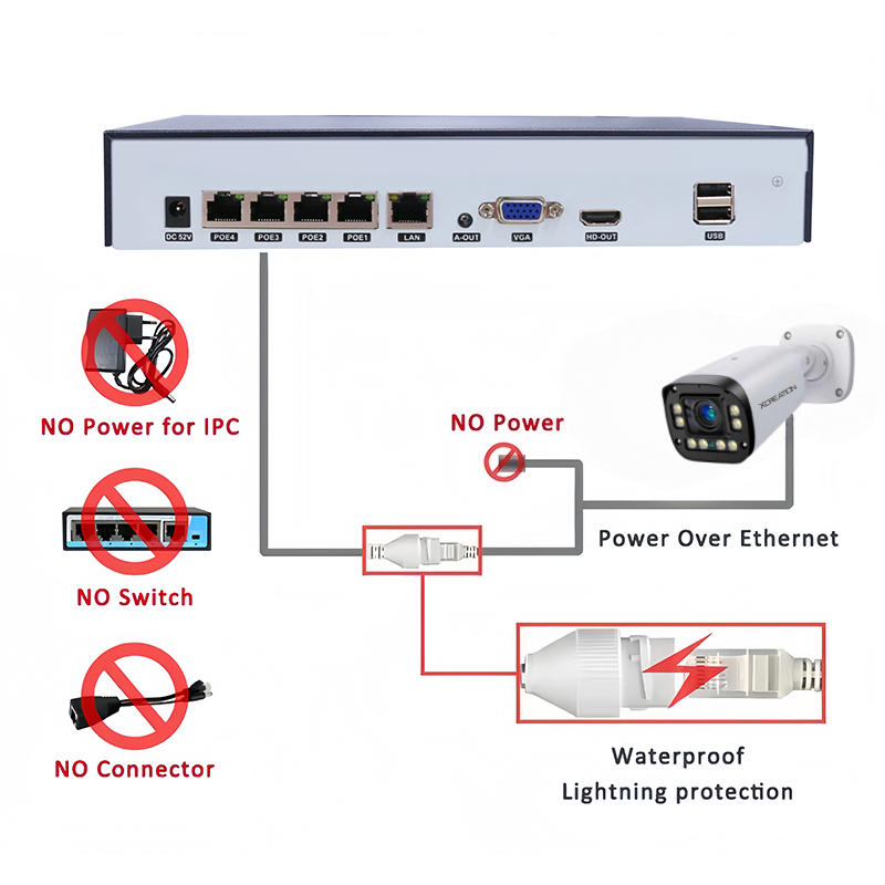 Xcreation XMEye Pro POE Camera Full Color Night Vision with Bullet IR Two-Way Audio Metal Shell IP66 Waterproof