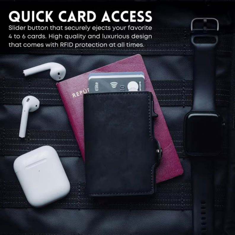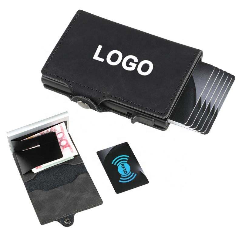 Xdh193 Customized Logo Leather Credit Rfid Wallet Pop up Business Id Aluminum Name Card Binder Holder
