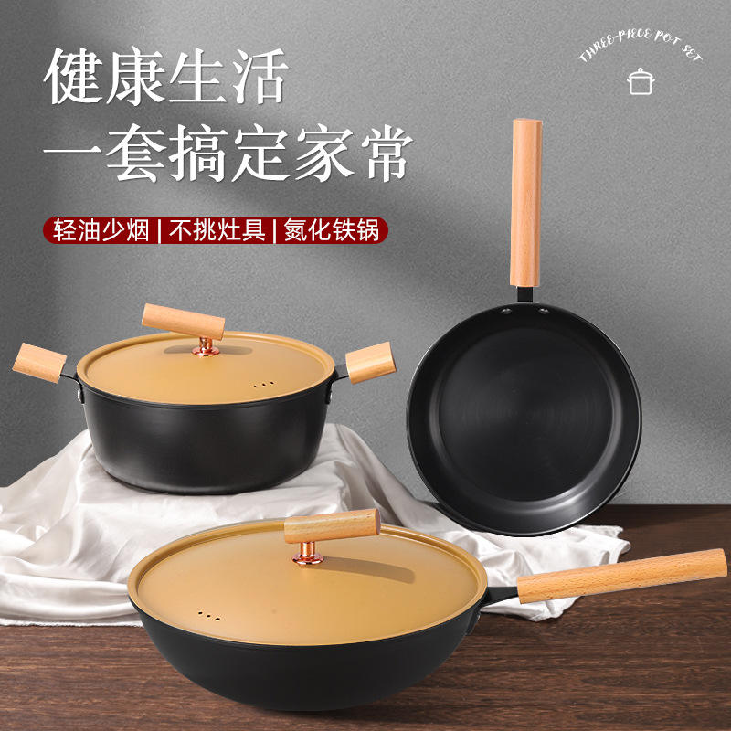 Xiangrui King Returns 3-Piece Cast Iron Cookware Set Thickened Uncoated Oven Safe Durable Gift Kitchenware