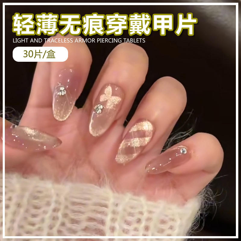 Xiaohongshu Hot-Selling Handmade Wearable Butterfly Cat Eye Rhinestones High-End Stickers Hot Girl Fake Nail Tips