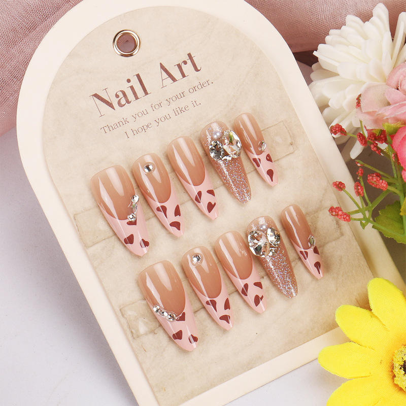 Xiaohongshu Hot-Selling Nails High-End Autumn Winter French Manicure Rhinestone Sparkling Wearable Long Nail Tips