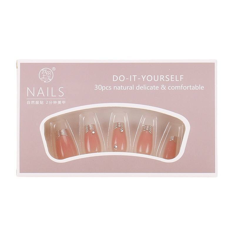 Xiaohongshu Hot-Selling Wearable Nails High-End Feel Autumn Winter Gold-Plated Sparkling Dia French Tips Blush Handmade Fake