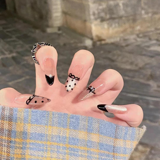 Xiaohongshu Hot-Selling Wearable Nails INS High-End French Lace Edge Tips Removable Fake Nail Stickers 30 Pieces