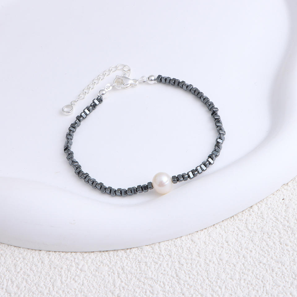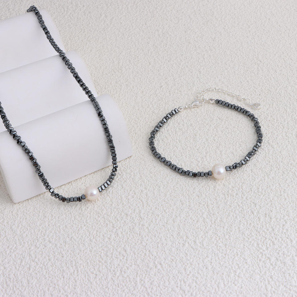 Xiaohongshu Luxury High-End Women's Necklace Bracelet Set Black Broken Silver with Natural Freshwater Pearl High Fashion Jewelry