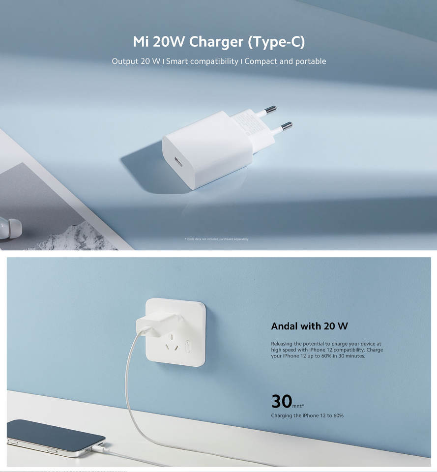 Xiaomi 20W Smart Charger (Type-C) for EU Compatible with Pro Max Mobile Watch Laptop-8A Output Current