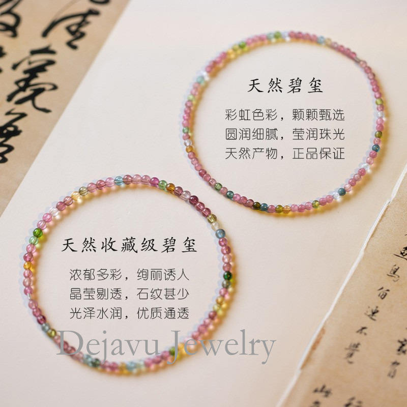 Xiaomi Bead Bracelet Natural Stone Rainbow Tourmaline Elastic Cord Layered Ultra-fine Accessories Beads Good Luck