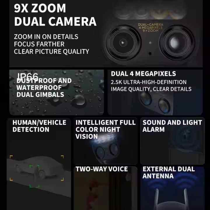 Outdoor Camera CW700S 2.5K Hd 9X Zoom Dual Antenna WiFi Full Night Vision Two Way Audio AI Human Detection Smart Camera