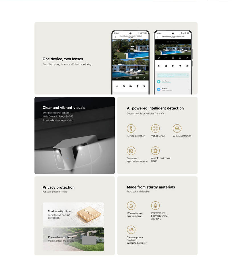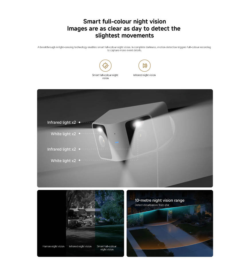For Outdoor Security Camera CW100 Dual 10x Optical Zoom CMOS Imaging Sensor 120 Wide Angle H.265 Night Vision Cloud Memory