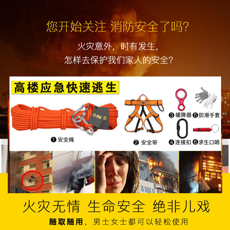 Xinda Fire Escape Rope Kit Orange Nylon 6 Piece Emergency Rescue Descent Safety Equipment