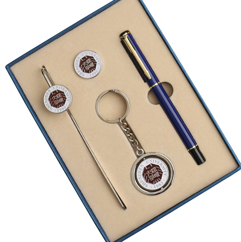 Xinrunjin Custom Business Gift Set University Corporate Metal Badge Keychain Bookmark B2B Alumni Employee Branded Souvenir