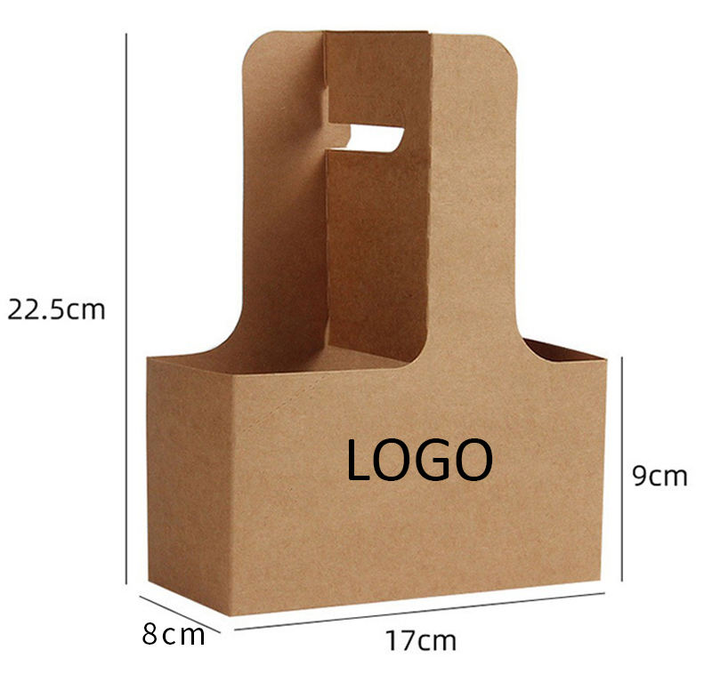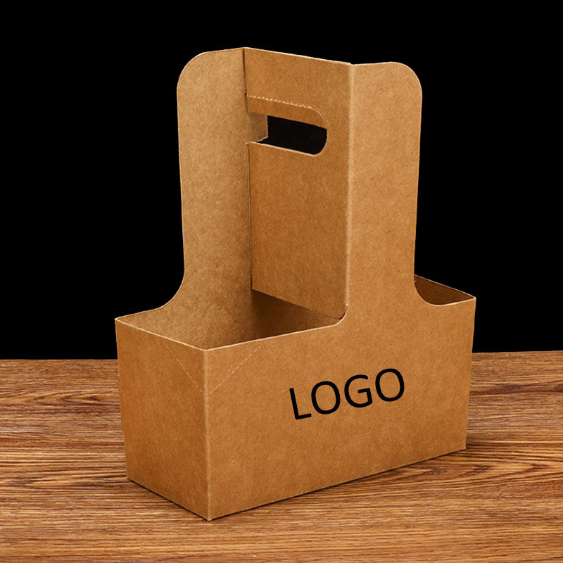 Xinrunjin Custom Logo Kraft Paper Coffee Cup Carrier with Handle Eco Friendly Takeaway Drink Holder for Cafe Shop Juice Tea Use