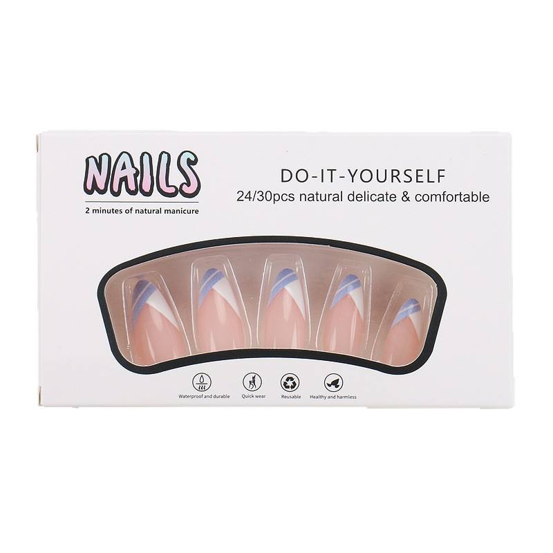 Xiyin Hot-Selling Wearable Simple Al Shape Nude Pink Blue White Color Block Nail Stickers Removable Fake Nails 24 Pieces