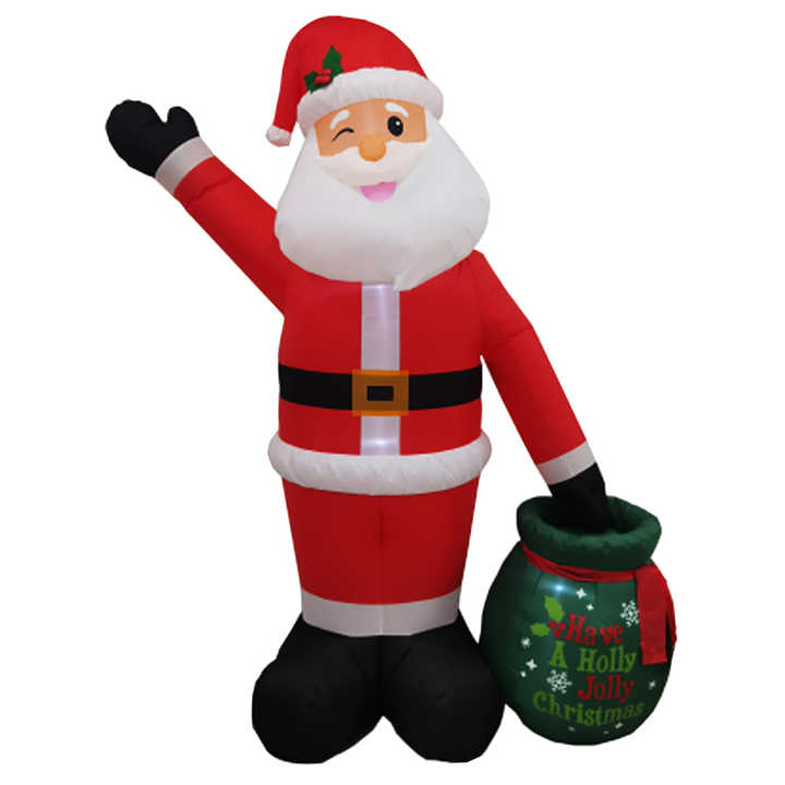 Xmas Outdoor LED IP44 Waterproof Inflatable 8ft Santa with Gift Bag Wink Holly Jolly Decoration for Lawn Yard