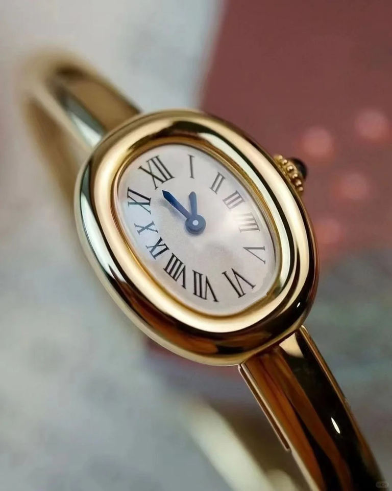 Xmas Present Timeless Curved Case Women's Watch Minimalist Waterproof Gold Tone Bangle Band Quartz Watch