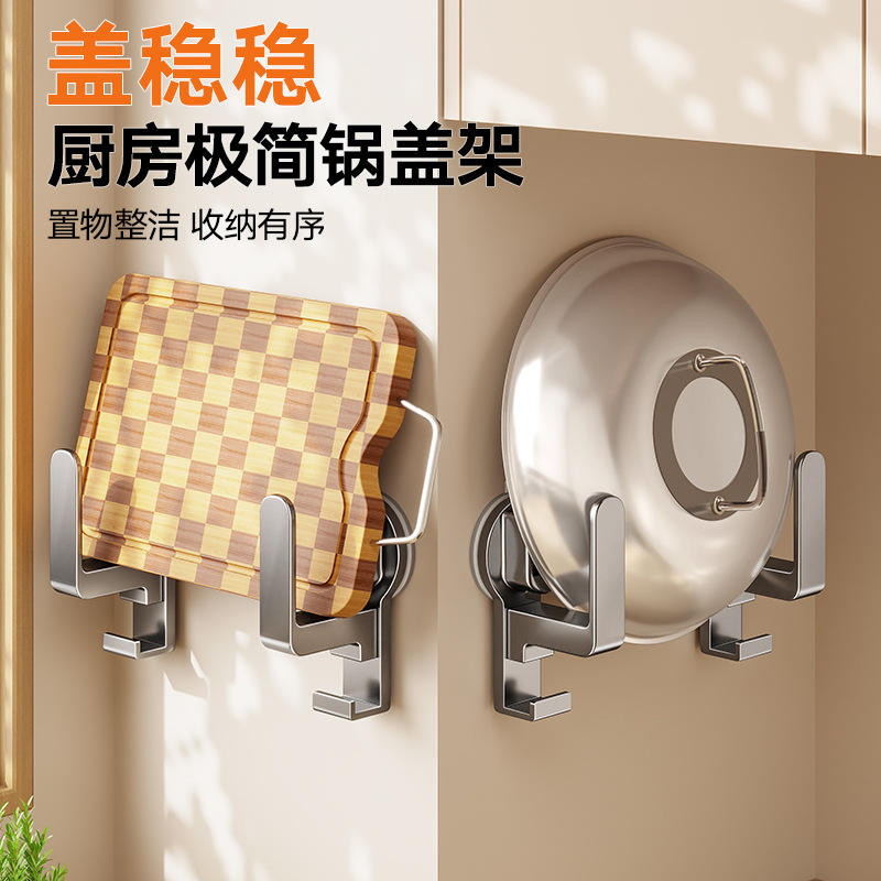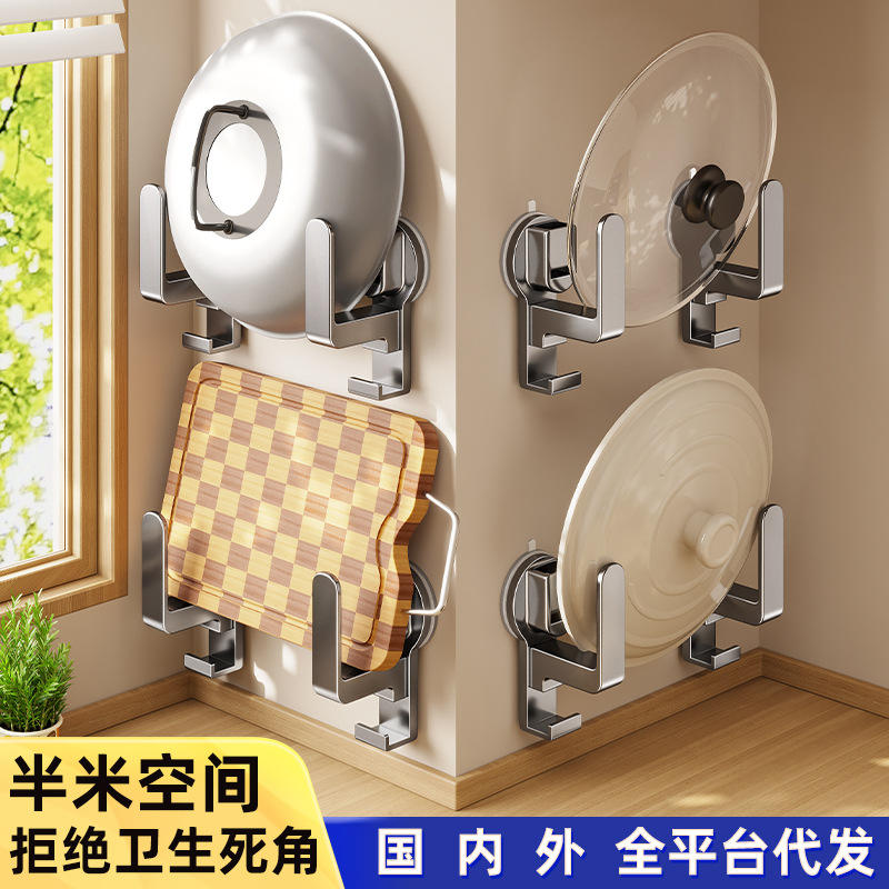 Xp0480 Kitchen Pot Rack Wall Mounted Suction Cup Holder For Cutting Boards And Lids Minimalist Design Hanging Storage Solution