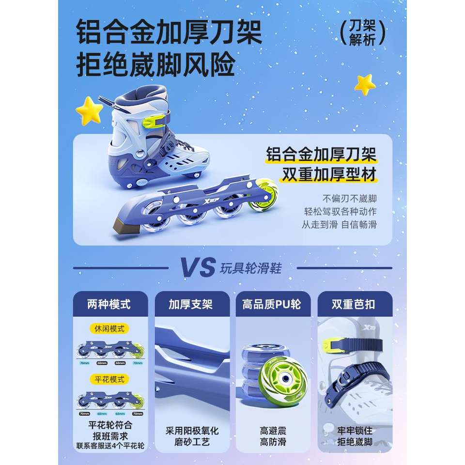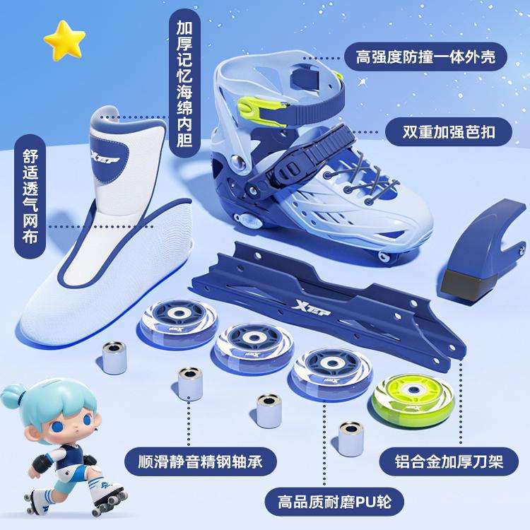 Xtep Kids Roller Skates TPR Sole Abec 7 Bearings Breathable For 6-8 Years Single Row Wheels