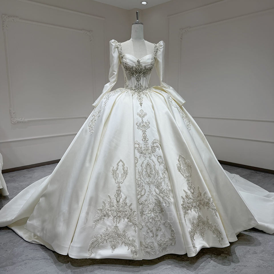 Xx61 Modern Sparkling Ivory Crystal Beaded Appliques Wedding Dress Ball Gown Sweetheart Bridal Chapel Train for