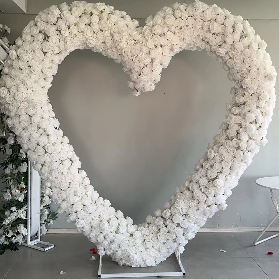 Y-HFA114 Artificial white heart flower arch panel 3d heart flower arch backdrop heart flower arch silk for wedding decoration