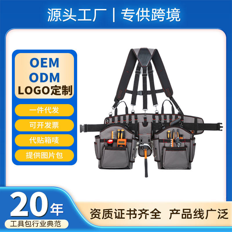 Y015 Tool Waist Bag 15-19 Pockets Adjustable Strap Buckle Closure Portable Fanny Pack For Repair Installation