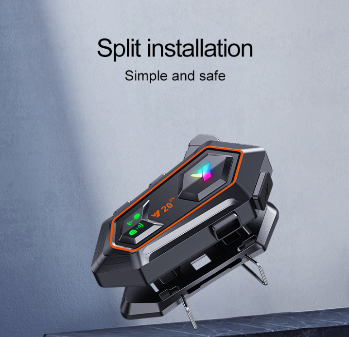 Y20 2X is a waterproof ABS helmet-mounted stereo headset communication system for motorcycles, featuring a voice assistant.