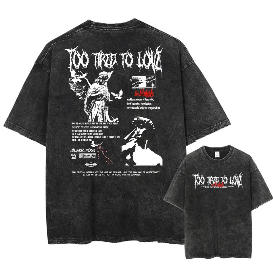Y2K Acid Washed T-Shirt Vintage Cotton Harajuku Gothic Streetwear Print Women's Unisex Loose Fashion Tops Soft Tees for Men