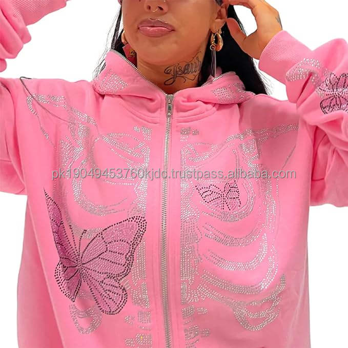 Y2K Full Zip-Up Hoodie with Skeleton Skull Print 3D Embroidery Aesthetic Badge Men's Women's Breathable Anti-Shrink Sweatshirts