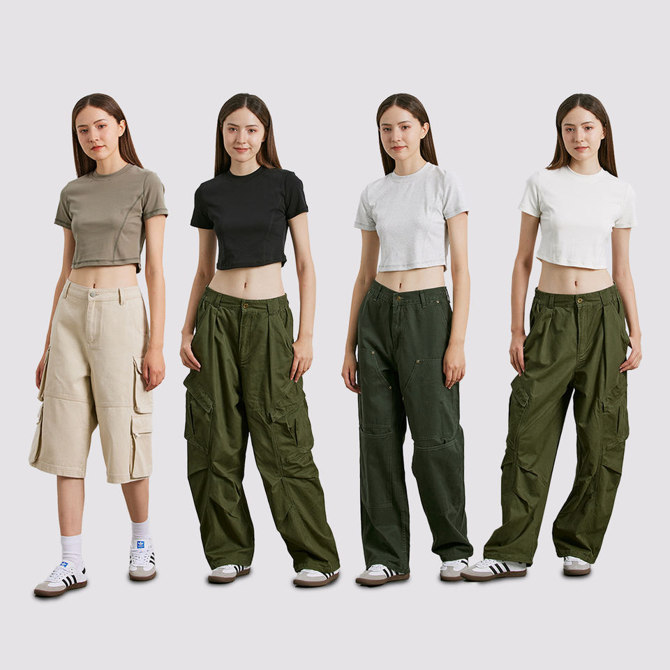 Y2K Retro Crop Tee Women's Ribbed Bone Pressed Short