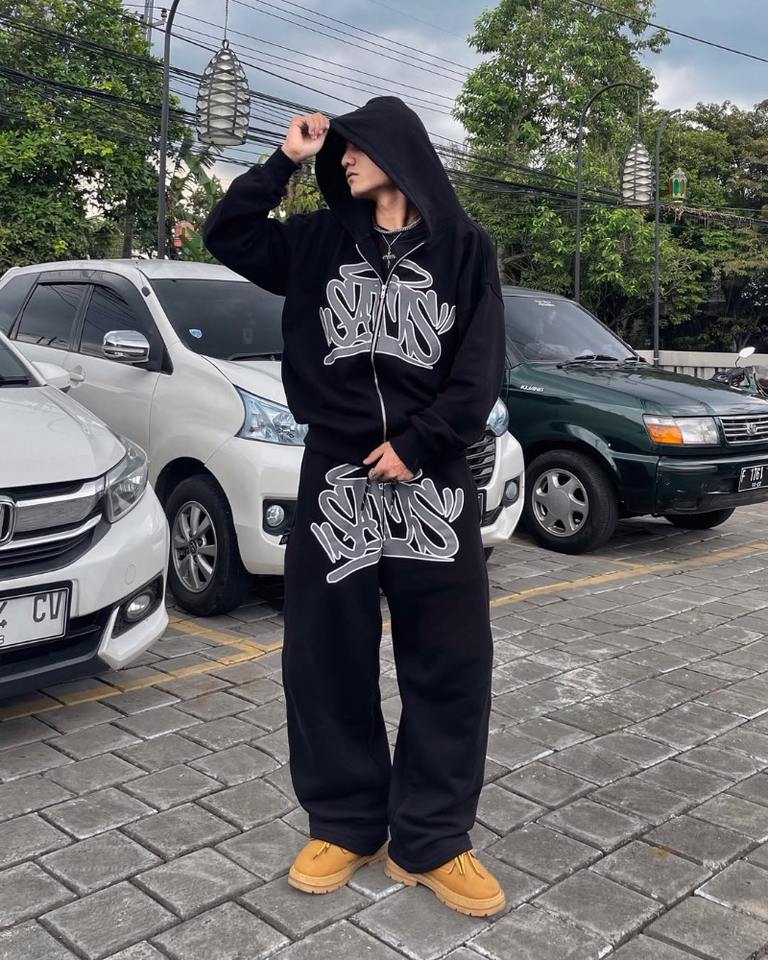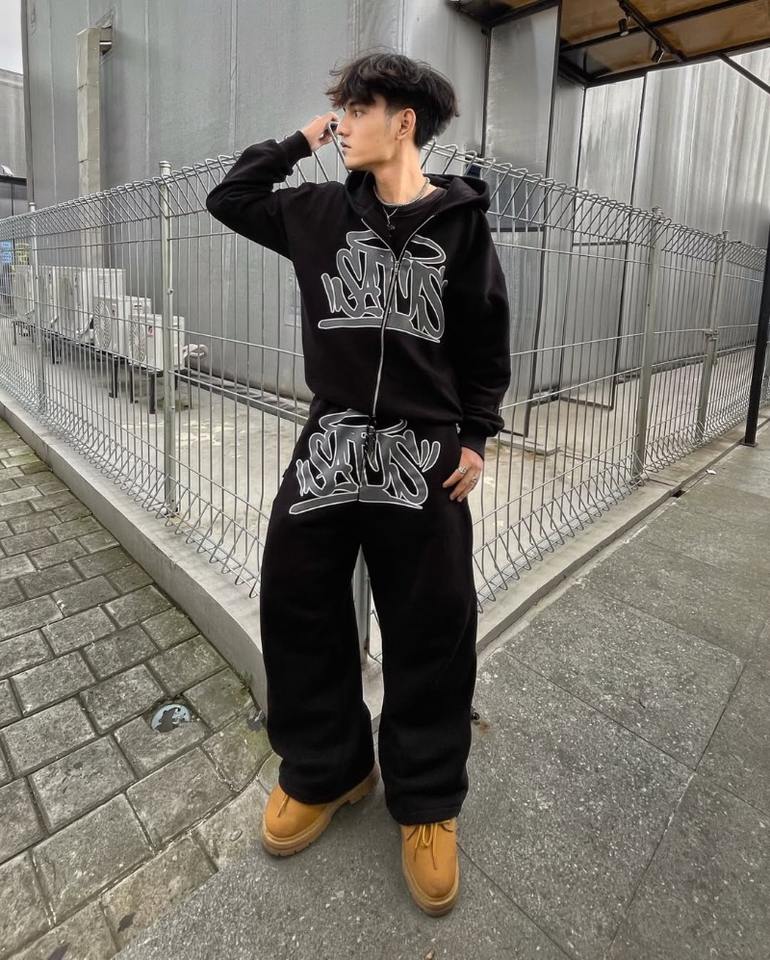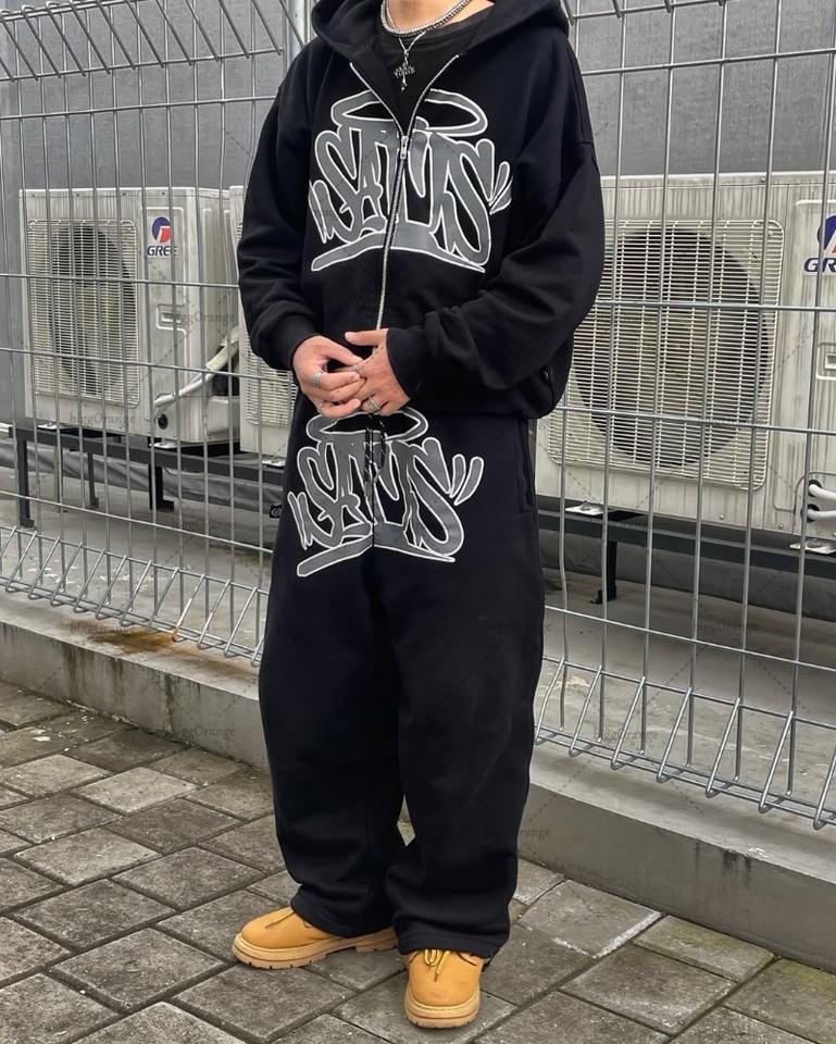 Y2K Retro Zipper Hoodie Sportswear Pants for Men Streetwear with Hip Hop Trendy Printed Casual Couple Clothing for Autumn Winter
