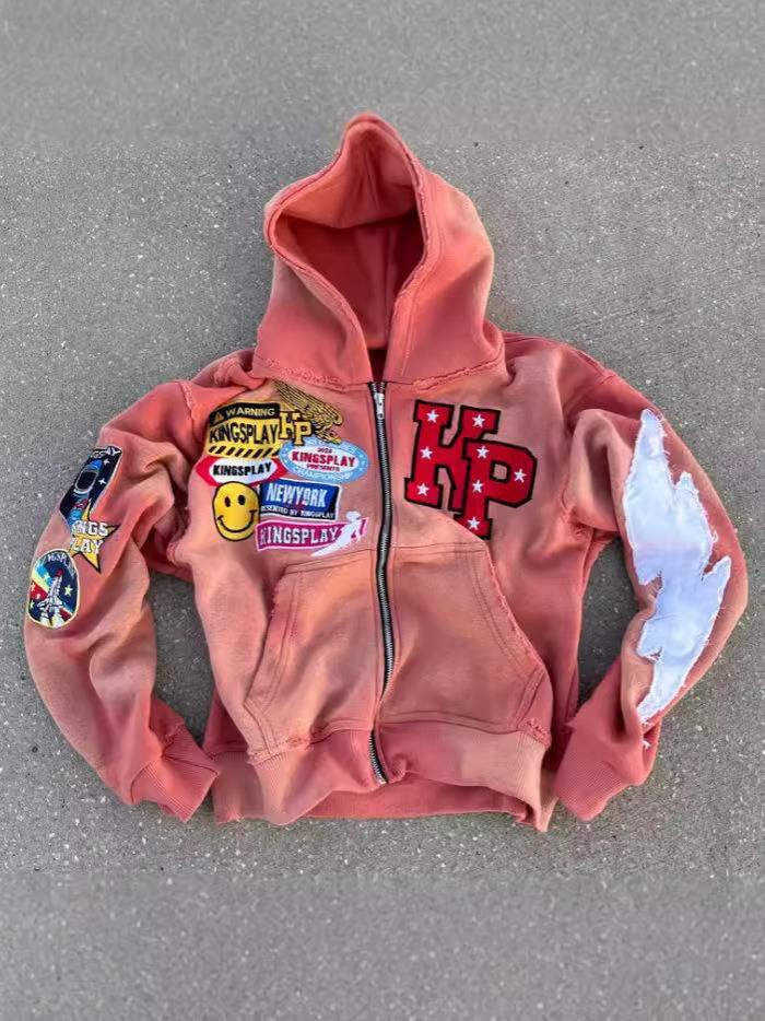 Y2k Streetwear 400 Gsm French Terry Zipup Vintage High Quality Cotton Sweatshirt Heavyweight Embroidery Acid Wash Zip up Hoodie