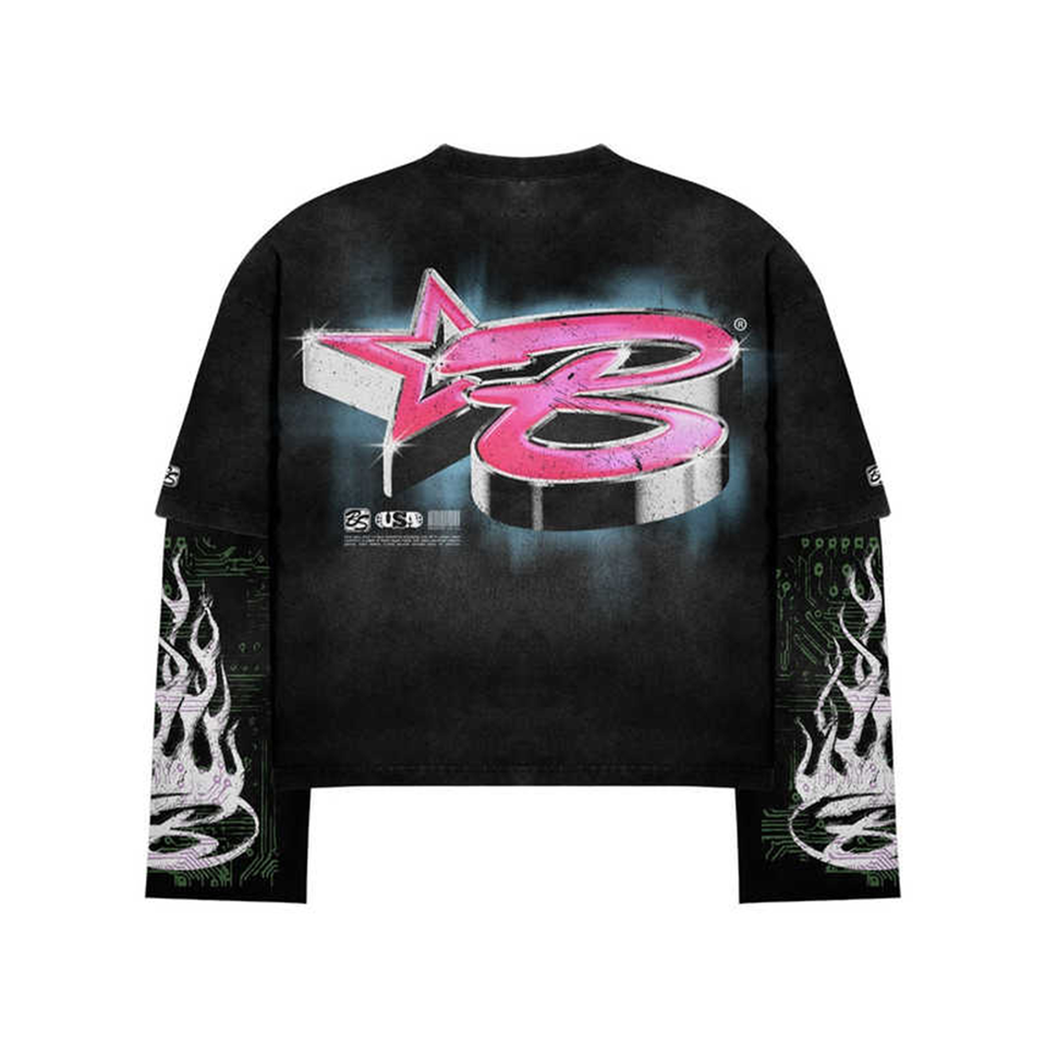 Y2k Streetwear Custom Screen Print Men Boyx Double Layer Sleeve's T Shirt Oversize Vintage AcidWash Men Boxy T Shirt Heavyweight