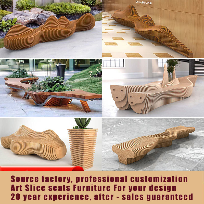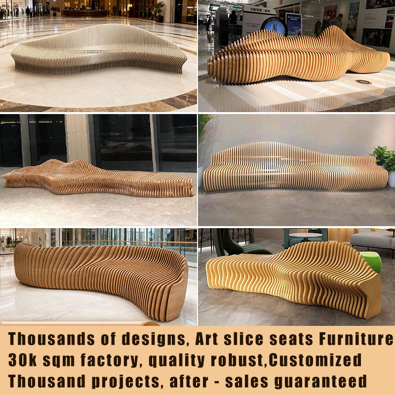 Y499 Stylish Undulating Wooden Chairs Artistic Flair Malls Public Areas Sound Absorbing Couch Material Non Slip Base Safety