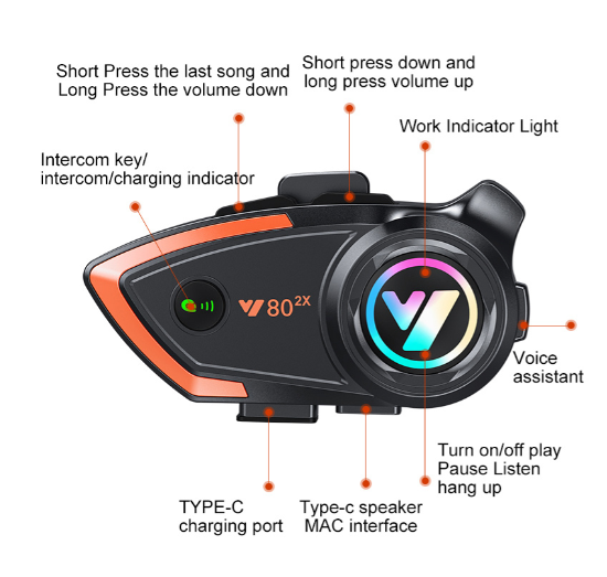Y80-2X Full Duplex 800m Motorcycle Intercom Range Wireless Intercom Headphones for Motorbike Helmet with Clear Sound Quality