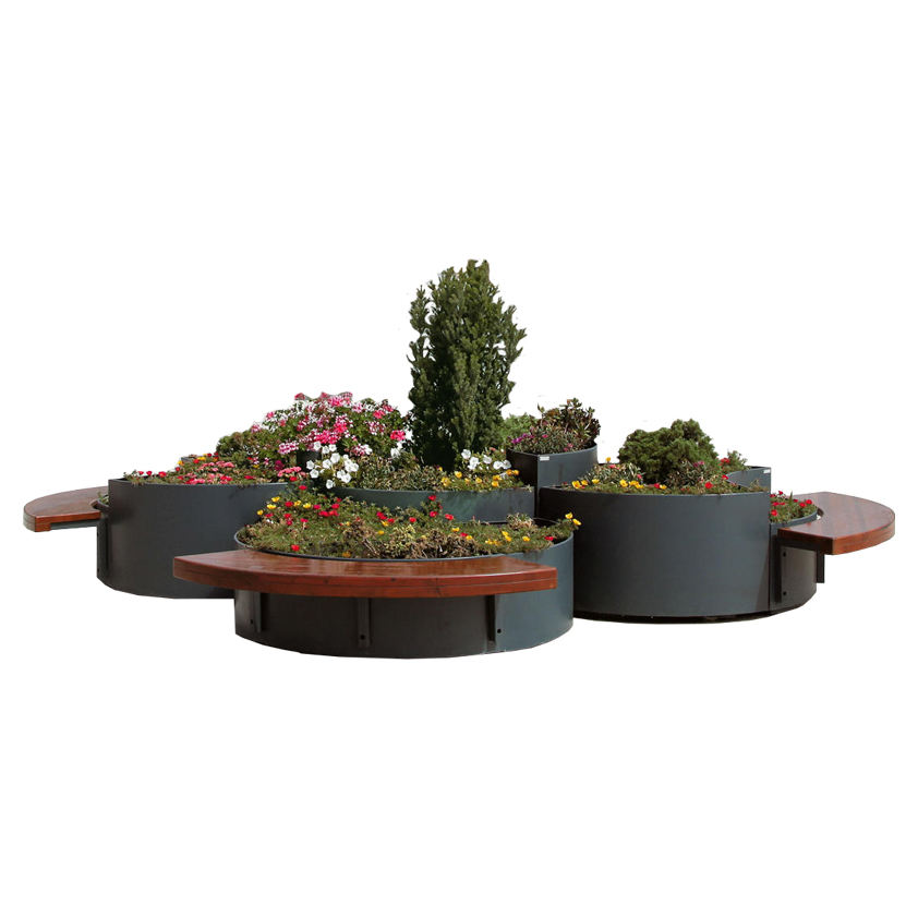 Y831 Large Size Outdoor Chair and Flowerpot Wood Metal Garden Shopping Center Art Decoration Leisure Resting Waiting Chair Bench