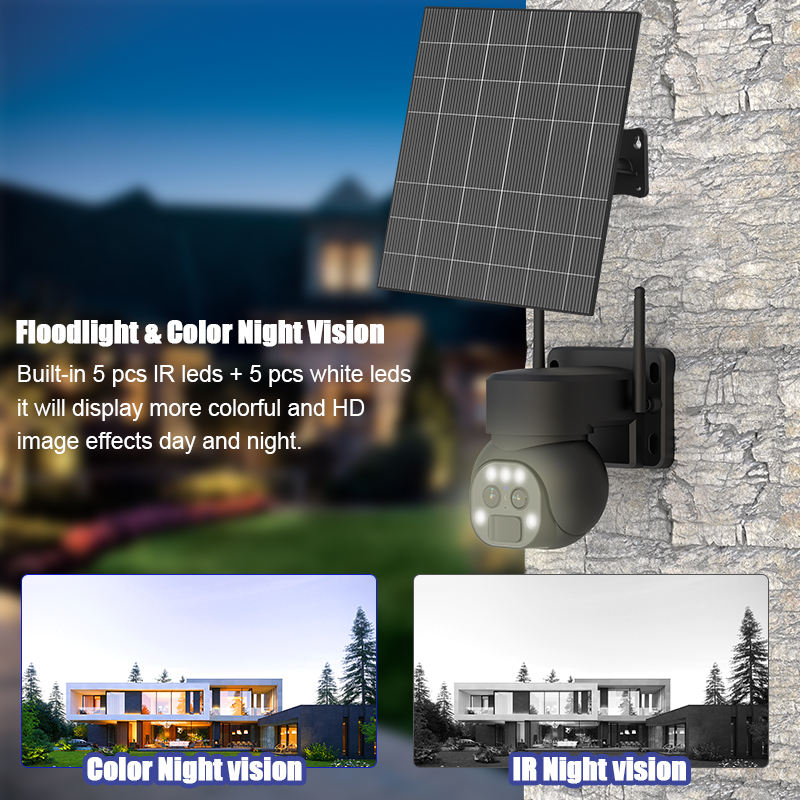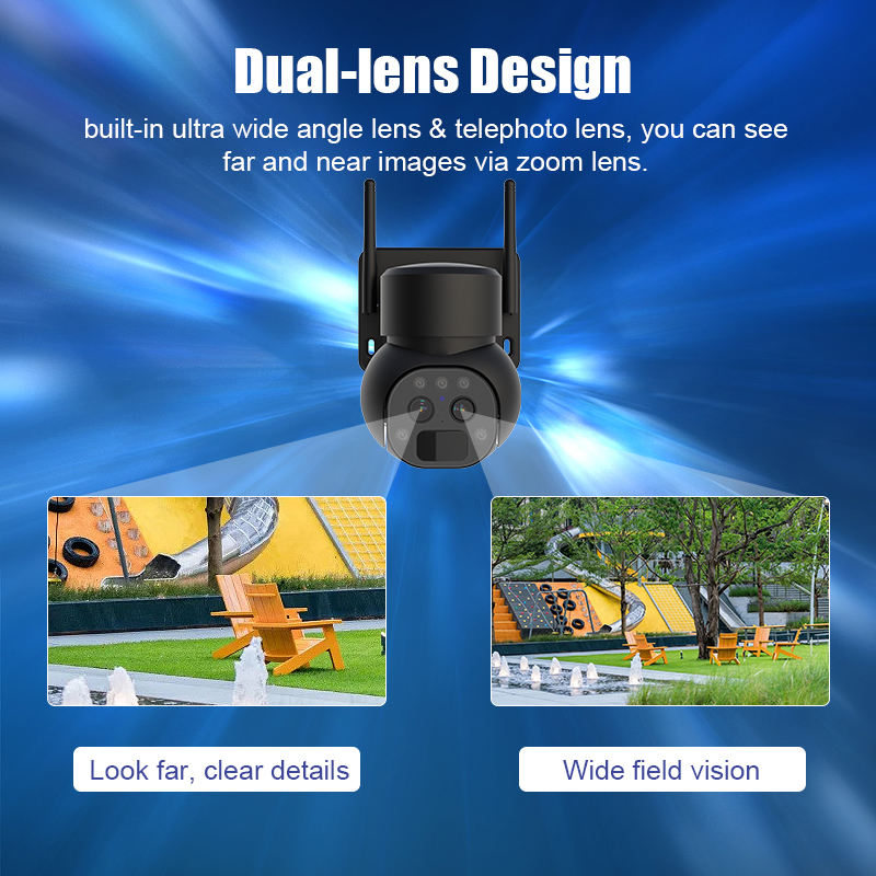 Y9 Dual Lens Solar Battery Powered Ptz Mini Dome Wireless Camera Home Surveillance Black Logo Original Equipment Manufacturer