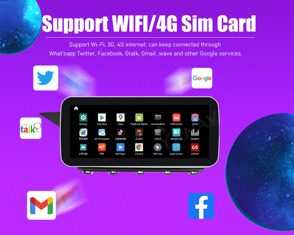 GPS, DSP, CarPlay, android auto, picture in picture, Split Screen, Car Steering Wheel ControlFunction
